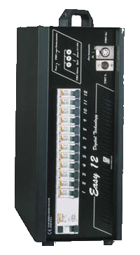 12-krei­si­ge Leis­tungs­ein­heit mit 12×10 A, alle Ab­gänge mit Sicherungsautomaten 10AC/1P ab­ge­sichert, gut ge­eignet für Fest­in­stal­la­tio­nen, An­steuer­ung: DMX512, An­schluss: Ka­bel 5×6 mm²