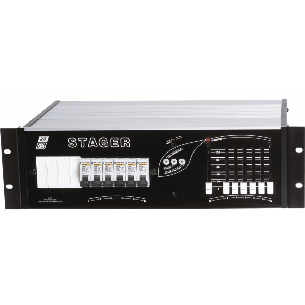 Der STAGER ist eine Leis­tungs­ein­heit mit sechs Licht­steuer­krei­sen. Die­se kön­nen so­wohl mit­tels der in­ter­nen Schiebe­reg­ler als auch von aus­sen mit di­gi­ta­len DMX-Steuer­sig­nal an­ge­steuert wer­den. An­steuer­ung: DMX512, 6 ein­ge­bau­te Po­ten­tio­me­ter mit Mas­ter, Kreis­ab­sicher­ung je­weils nach na­tio­nal­er Vor­gabe 10AC, Ab­gänge nach Wunsch auf Stecker oder Klem­men. Der STAGER eig­net sich für: Theater, Mehr­zweck­hal­len, Mu­seen, Schul­aulen, Disko­theken, auf Tour­nee…